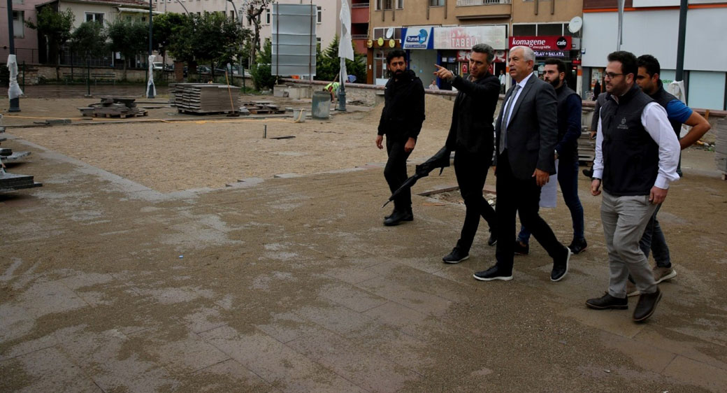 İş kapsamında meydanda Türk motifi granit imalatlarına başlandı. Betonarme saksı imalatları tamamlanırken ahşap kaplamaları devam ediyor. Kullanılmaz hale gelen eski şadırvan yıkılırken yeni şadırvanın yapımı tamamlandı. Pergola ve taş duvar imalatları ise devam ediyor.