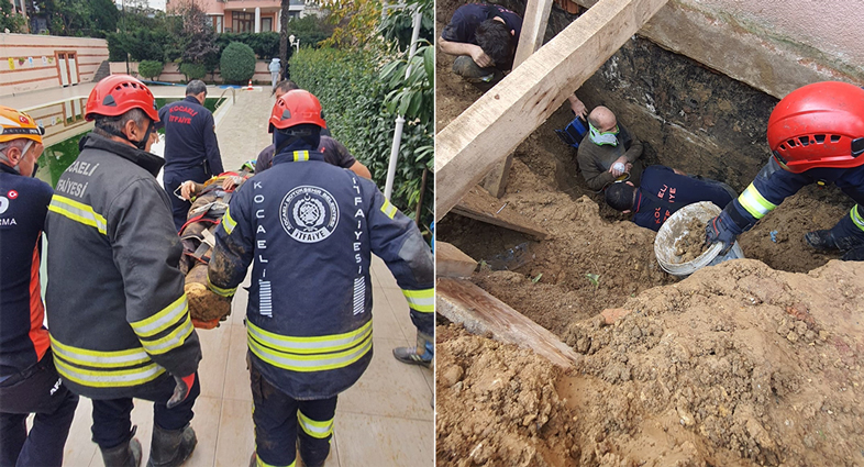 Darıca’da meydana gelen iş kazasında toprak kayması sonucu göçükte sıkışan vatandaşı Büyükşehir itfaiyesi kurtardı