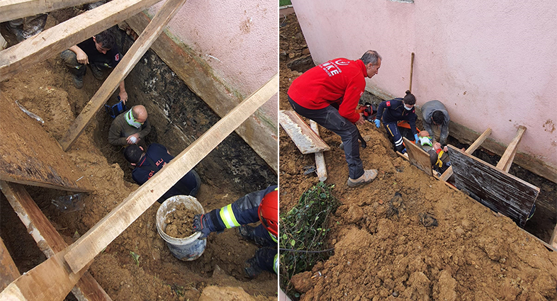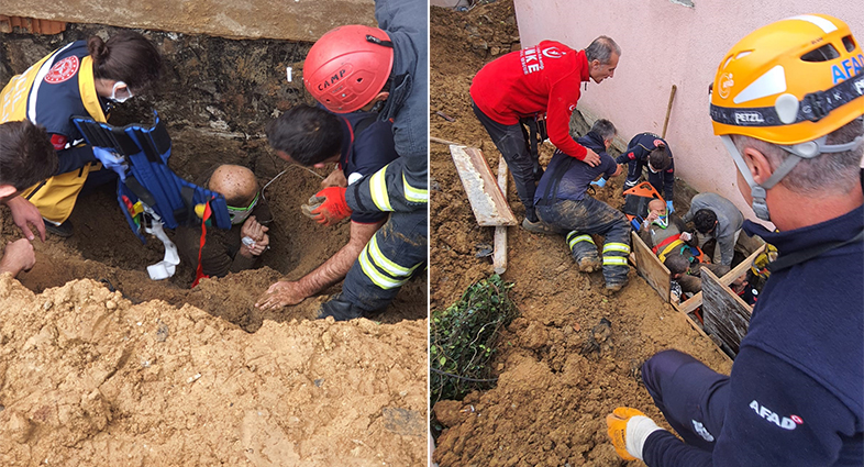 Göçükte sıkışan vatandaşı Büyükşehir itfaiyesi kurtardı