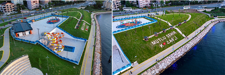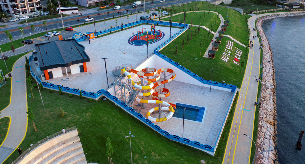 Büyükşehir’in Gölcük Değirmendere-Halıdere arası sahil alanında yaptığı çift kaydıraklı aquapark tamamlandı