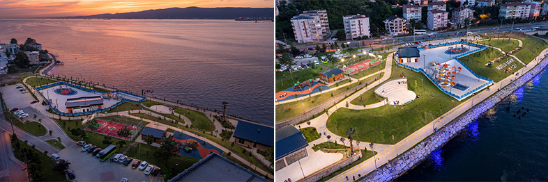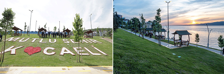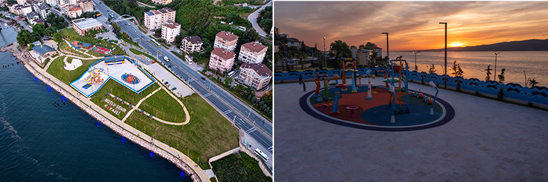 Gölcük Değirmendere-Halıdere arası sahil projesi 37 bin m² alana sahip. Projenin 19 bin m²’lik kısmı vatandaşların rahat vakit geçirebilmesi için yeşil alan olarak ayrıldı. Bin 350 metre sahil uzunluğuna sahip projede vatandaşlar için yürüyüş ve bisiklet yolları inşa edildi.