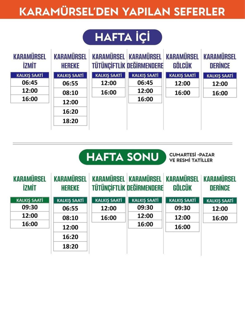 Vatandaşları deniz ulaşımına yönlendirmek ve D-130 üzerinde oluşabilecek bireysel araç yoğunluğu azaltmak isteyen Büyükşehir Belediyesi, Karamürsel, Değirmendere ve Gölcük’ten İzmit'e vapur seferlerinin sayısını artırdı. Ayrıca Gölcük'ten İzmit'e direkt seferler başlatıldı. Fiyatlarda yüzde 50 indirim yapılırken, binişler abonman kartlılar için 8 TL, öğrenciler için 12 TL, tam da 16 TL'ye düşürüldü. İzmit İskelesi’nden de 1 TL’ye şehir içi ring servisi olan 41Ç otobüs seferleri sürekli devrede olacak. Yani Karamürsel, Değirmendere ve Gölcük'ten vapurla İzmit şehir merkezine ulaşım sadece 17 TL(16+1) olacak.