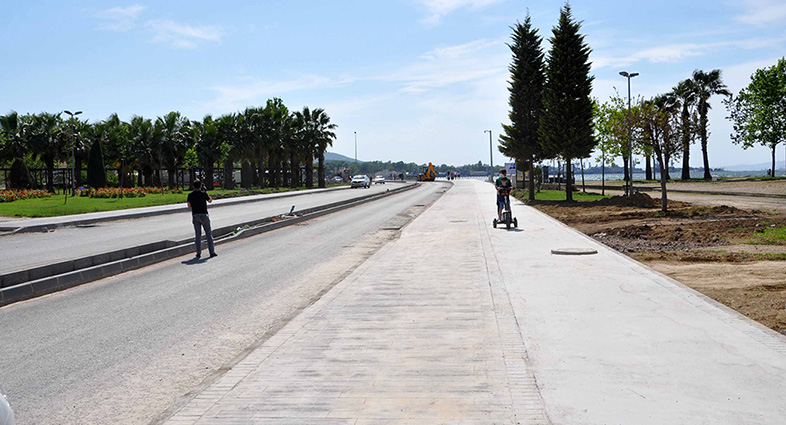 Büyükşehir Belediyesi tarafından yapılan çalışmalarla çehresi değişen, yürüyüş ve bisiklet yollarıyla ışıl ışıl olacak Gölcük Kavaklı Caddesi’nde çalışmalar sürüyor