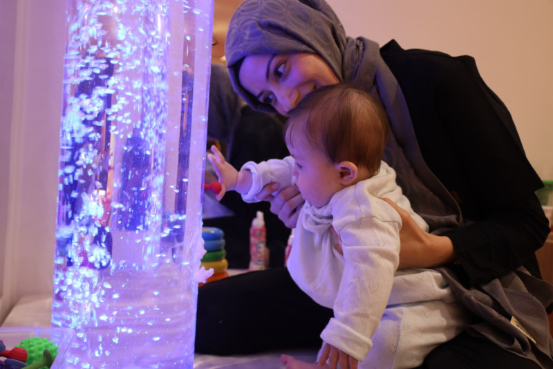 Kocaeli Büyükşehir Belediyesi’nin engelli bireylerin topluma daha aktif katılımını, sosyalleşmelerini ve yeni deneyimler kazanmalarını sağlamak amacıyla hayata geçirdiği Gonca Engelsiz Yaşam Merkezi, 7’den 70’e herkese kapılarını açıyor. Merkezin en küçük üyesi ise henüz 8 aylık olan Hümeyra İkiz. Down sendromlu doğan ve kalp rahatsızlığı nedeniyle zorlu bir süreçten geçen Hümeyra bebek, Gonca’daki duyu bütünleme terapileri sayesinde kısa sürede büyük gelişmeler kat etti.