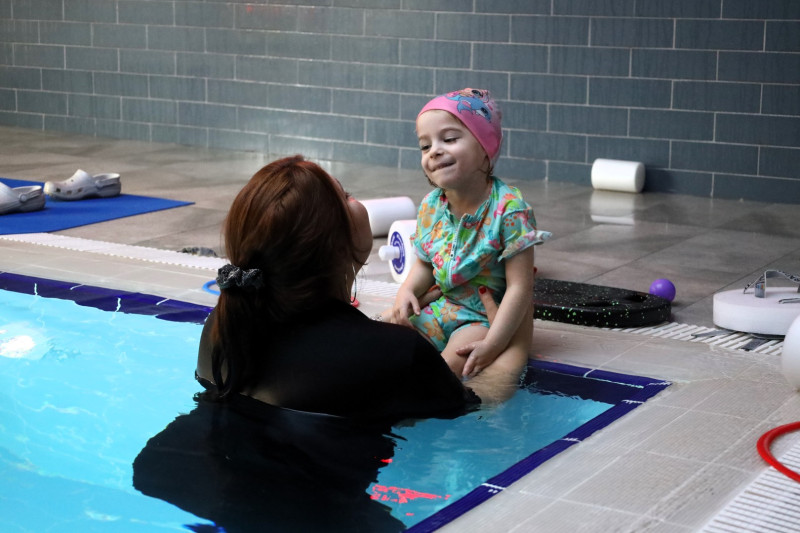 Gonca’da hidroterapi eğitimi alan üyelerden biri de küçük Duru. Merkezde fizik tedavi ve hidroterapi desteği alan 4 yaşındaki serebral palsili hastası Duru Atasoy, seanslara aktif bir şekilde katılıyor. Duru için su içinde vücut farkındalığı, denge ve kol kuvvetlendirme çalışmaları uygulanıyor. Uzman hocalar eşliğinde yapılan seanslar hem eğlenceli hem de motive edici bir ortamda geçerken, Duru’nun gelişimi aile tarafından da memnuniyetle takip ediliyor.