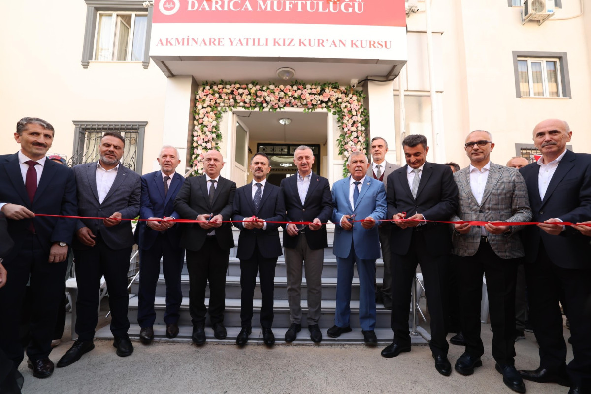 Kocaeli Büyükşehir Belediye Başkanı Tahir Büyükakın, Darıca Kazım Karabekir Mahallesi’nde yenilenerek yeniden hizmete sunulan Akminare Yatılı Kız Kur’an Kursu’nun açılışını gerçekleştirdi. Açılışta konuşan Başkan Büyükakın, ‘’Karşımda çok hayırlı ve güzel bir işe vesile olan çok güzel insanlar var. Gönlünüzün güzelliği yaptığınız işlere de yansımış’’ dedi. Açılış programına Başkan Büyükakın’ın yanı sıra Kocaeli Valisi İlhami Aktaş, Kocaeli İl Müftüsü Mehmet Sönmezoğlu, Darıca Kaymakamı Yüksel Kara, Darıca Belediye Başkanı Muzaffer Bıyık, Büyükşehir Belediyesi Başkan Vekili Hasan Soba, Bölge Koordinatörü İbrahim Pehlivan, AK Parti Darıca İlçe Başkanı Köksal Şakar ve hafız adayları katıldı.