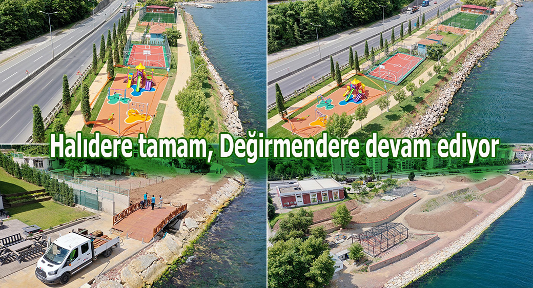 Gölcük Değirmendere-Halıdere arası sahil alanında Park ve Bahçeler Dairesi ekipleri yaklaşık 1 kilometrelik sahil kısmının otomatik sulama tesisatı ve çim serimini tamamladı. Halıdere ve Değirmendere arasından geçen dere üzerine ahşap geçit yolu yapıldı. İnce işçiliğe geçilen mescit ve tuvalet binasının çelik imalatı tamamlandı. Değirmendere tarafında kafeterya binası çelik imalatları hali hazır da yapımına devam ediyor. Halıdere tarafında mevcutta bulunan futbol sahası ve idari bina revize edildi. Bir adet basketbol sahası oyun grubu ve fitness alanı imalatları tamamlanarak, vatandaşların kullanımına açıldı.