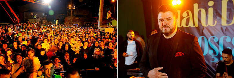 İlahi sanatçısı Hasan Dursun, Şehit Ramazan Sarıkaya Kültür Merkezi yanında bulunan alanda gerçekleştirdiği konserde İzmitlilere ilahi ziyafeti sundu. Kocaeli Büyükşehir Belediyesi tarafından düzenlenen etkinlikte İzmitliler, en sevilen ilahileri seslendiren Dursun’a eşlik etti. Programda kısa bir konuşma yapan Hasan Dursun, İzmitliler ile buluşmaktan son derece mutlu olduğunu dile getirerek ev sahipliğinden dolayı Kocaeli Büyükşehir Belediye Başkanı Tahir Büyükakın’a teşekkür etti. Program öncesi çocuklara dondurma, patlamış mısır ve pamuk şeker ikram edildi. Programda çocuklar için palyaço ve yüz boyama etkinliği de gerçekleşti.