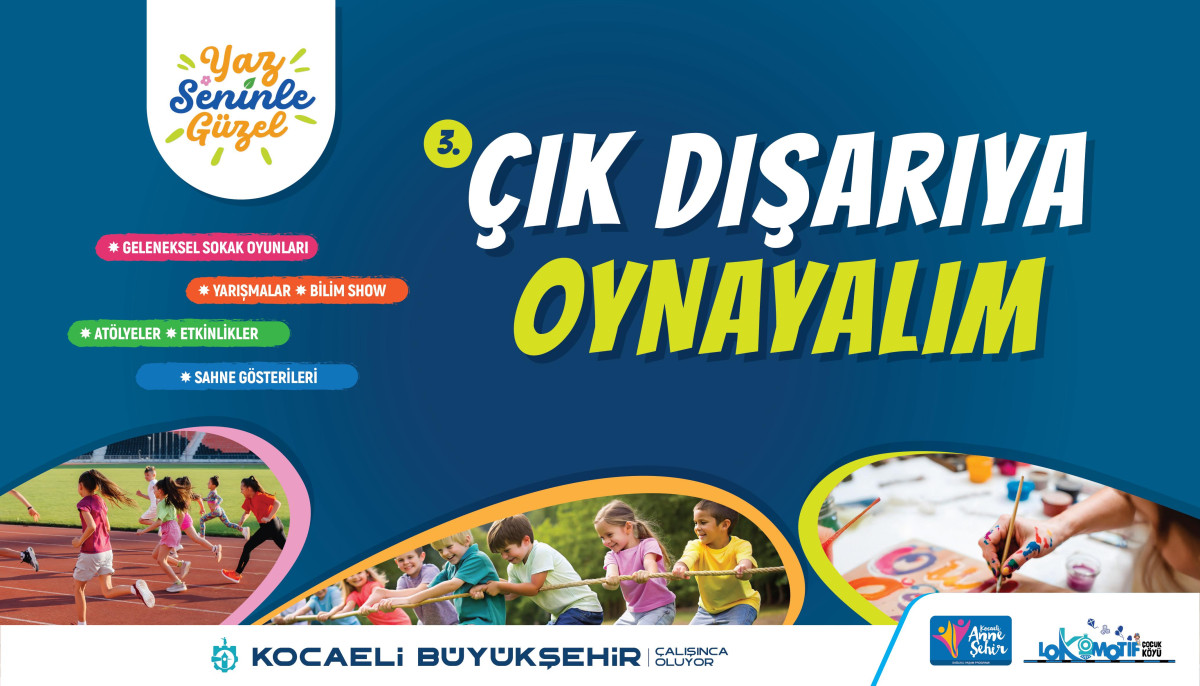 Kocaeli Büyükşehir Belediyesi, çocukların yaz tatilini dolu dolu geçirmesi ve aileleri bir araya getirme amacıyla bu yıl üçüncüsünü düzenlediği “Çık Dışarıya Oynayalım” etkinliklerini başlatıyor. Kadın ve Aile Hizmetleri Dairesi Başkanlığı’na bağlı Çocuk Hizmetleri Şube Müdürlüğü tarafından organize edilen program, 11 Temmuz’da İzmit Doğu Kışla Gençlik Parkı'nda başlayacak.