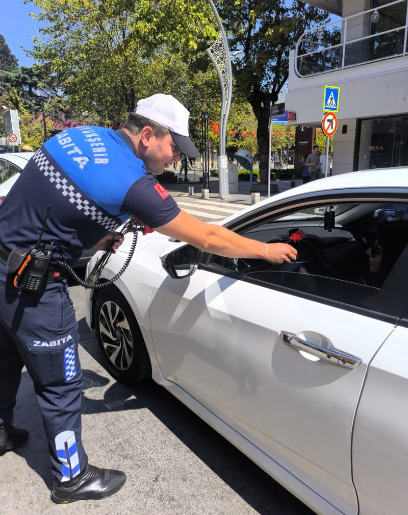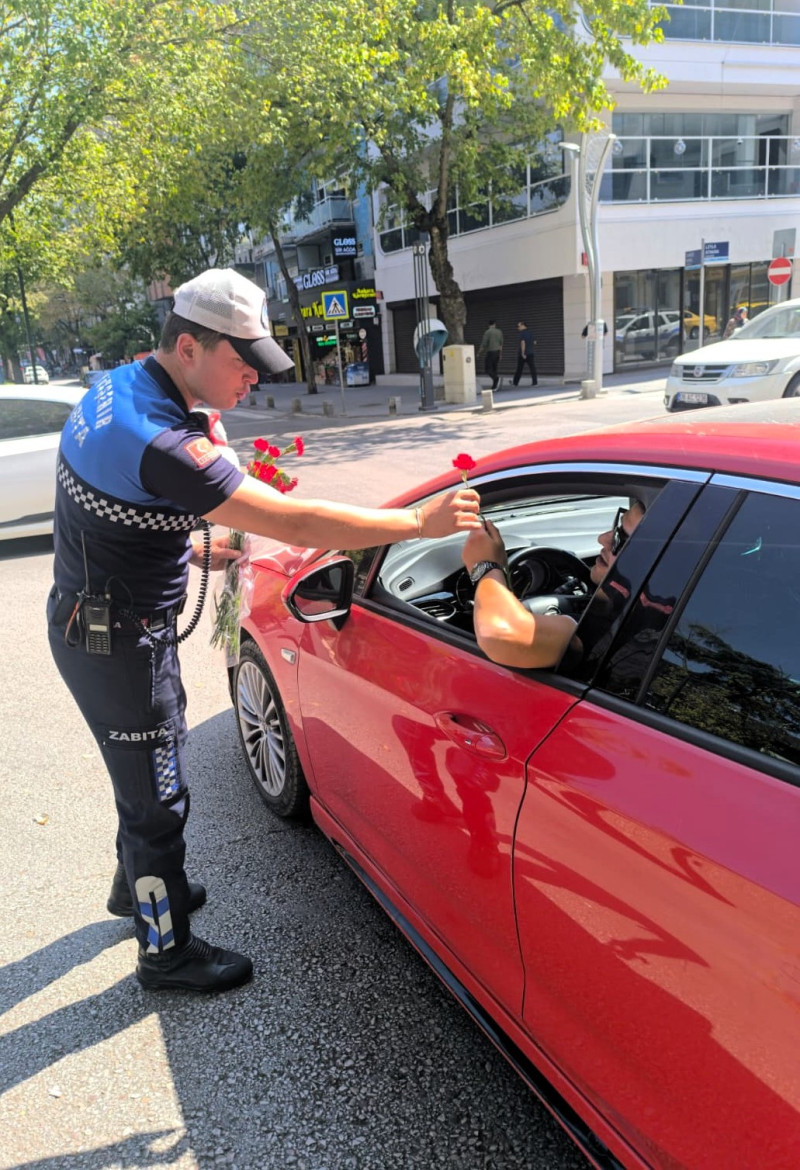 Büyükşehir Zabıtası, Cumhuriyet Bulvarı’nda çiçek dağıttı;