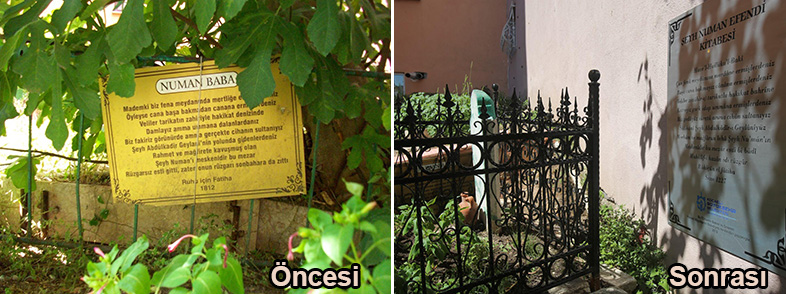 207 yıl önce yapılan Numan Efendi Kabri’nin bakım ve onarımı sırasında 3 tane daha mezar taşı bulundu. Daha önce kabrin yanında olduğu düşünülen mezar taşlarını da koruma altına alan Büyükşehir Belediyesi İmar ve Şehircilik Dairesi Tarihi Mekânlar ve Kent Estetiği Şube Müdürlüğü, temizledikleri mezar taşlarını kabrin hemen yanı başına yerleştirdi. 2019 yılına kadar bir harabe görünümünde olan Numan Efendi’nin kabri, geçtiğimiz günlerde çevre düzenlemesi ve onarım çalışmalarının tamamlanmasıyla bu günkü görünümüne kavuştu.