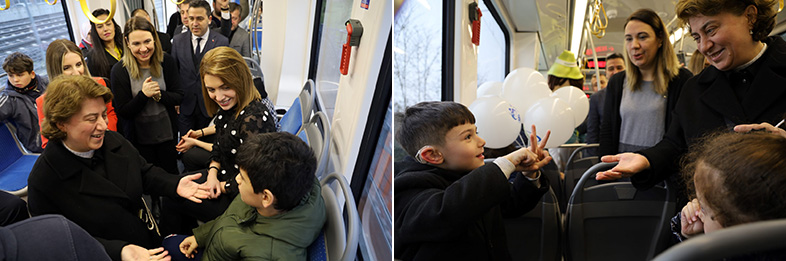 Kocaeli Büyükşehir Belediyesi iştiraklerinden UlaşımPark A.Ş., A.Gazanfer Bilge İşitme Engelliler İlk ve Orta Okulu’nda eğitim gören öğrencileri Akçaray’da misafir etti. UlaşımPark tarafından gerçekleştirilen etkinliğin en dikkat çeken noktası da bazı çocukların ilk defa tramvaya binmeleri oldu. İşitme engelli öğrencilerin katılım sağladığı etkinlikte Fevziye durağından tramvaya binen Büyükşehir Belediyesi Başkanı Doç. Dr. Tahir Büyüakkın’ın eşi Doç. Dr. Figen Büyükakın çocuklara sürpriz yaptı. İşaret diliyle işitme engelli çocuklarla iletişime geçen Büyükakın, çocuklarla keyifli dakikalar geçirdi.
