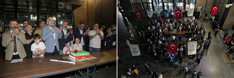 Kocaeli’nin okuyan ve okutan kent olarak anılmasına büyük katkılar sağlayan ve bu yıl “Şehir ve Kitap” temasıyla 13’üncü kez düzenlenen Kocaeli Kitap Fuarı, rekor bir ziyaretçiyle kapılarını kapattı. Kâğıttan dünyaları keşfe çıkaran Türkiye’nin en büyük fuarı, 07-15 Ekim tarihleri arasında 988 bin 444 ziyaretçiyi ağırlayarak rekor kırdı. Kocaeli Kitap Fuarı, böylece Türkiye’nin en büyük kitap fuarı olma unvanını bir kez daha taçlandırmış oldu. Fuarın kapanışında Genel Sekreter Balamir Gündoğdu ile Genel Sekreter Yardımcısı Sadık Uysal, personelle beraber pasta kesti. Genel Sekreter Gündoğdu, Kocaeli Kitap Fuarı’nda emeği geçen tüm Büyükşehir personeline teşekkür etti. 9 gün boyunca Türkiye’nin en büyük kitap fuarının adına layık şekilde yazar, yayınevi ve kitapseverleri en güzel şekilde misafir ettiğini aktaran Genel Sekreter Gündoğdu, ‘’Kitap fuarına katılan tüm yazarlarımız, fuarın başarısını dile getirdi ve Büyükşehir Belediyesi’ni bu başarılı organizasyondan dolayı tebrik etti. Sizler de fuar boyunca Kocaeli’den ve çevre illerden gelen yüzbinlerce misafirimizi en güzel şekilde ağırladınız, emeği geçen tüm personelimize teşekkür ediyorum. Bu yıl fuarımızı 988 bin 444 kişi ziyaret etti. Böylece fuarımız yeni bir rekora daha imza attı. Önümüzdeki yıllarda Kocaeli Kitap Fuarı’nın da uluslararası boyuta taşınacağına gönülden inanıyorum. Bir kez daha emeği geçen tüm personelimize teşekkür ediyorum’’ dedi.