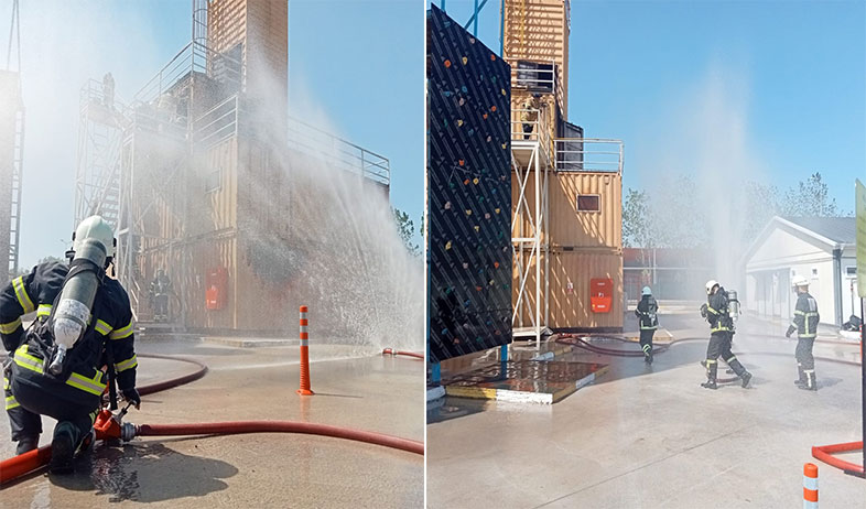Büyükşehir İtfaiyesinin Sanayi Mahallesi Ömer Türkçakal Bulvarı üzerinde bulunan İtfaiye Eğitim Merkezinde düzenlenen eğitimlerde, gerçeğe uygun simülatörler kullanılarak, canlı bir biçimde yangın söndürme faaliyetleri gerçekleştirildi.