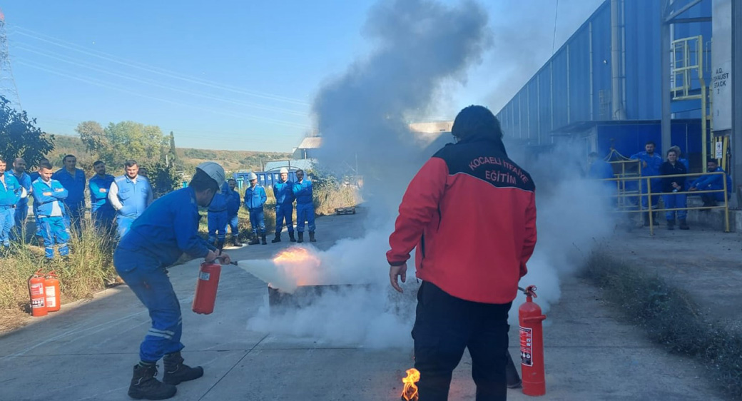 Eğitimin uygulamalı bölümünde, taşınabilir yangın söndürücüleriyle başlangıç yangınlarının söndürülmesi ve hortum dolapları ile hidrant kullanımı hakkında bilgiler sunuldu. Bu bağlamda işletmede bulunan Kuru Kimyevi Tozlu, Karbondioksitli ve Köpüklü taşınabilir yangın söndürücüler ile akaryakıt yangınına müdahale gerçekleştirildi. Ayrıca eğitimde, hidrant kullanımı, hidrantlardan hortum hattı oluşturulması, lanslar ve lansların doğru kullanımı ile su akımları ilgili personele uygulamalı olarak gösterildi.