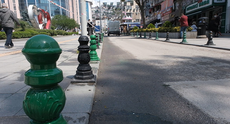 İzmit İnönü Caddesi’ndeki dubalar yeşil-siyaha boyandı