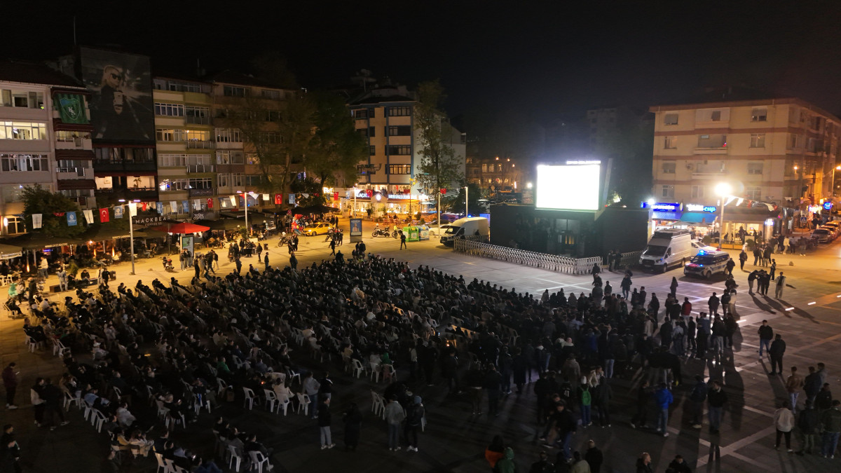 Büyükşehir’in İzmit Kent Meydanı’nda kurduğu dev ekrandan Adanaspor maçını izleyen yeşil-siyahlılar, 4-1’lik skorla gelen anlamlı galibiyetin keyfini yaşadı