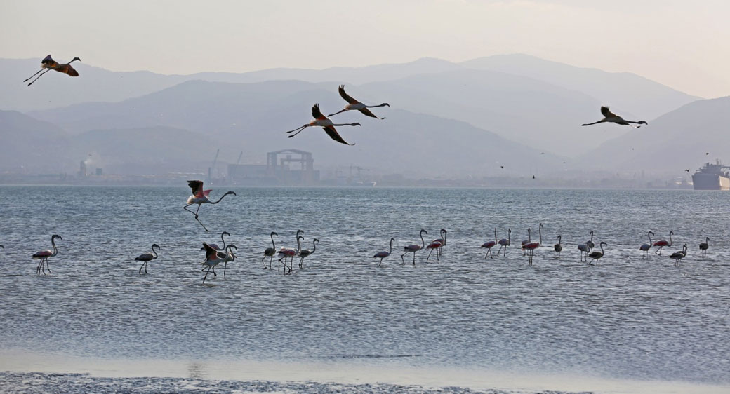 Kuş gözlemcilerinin gözde rotası olan İzmit Körfezi Sulak Alanı, flamingo başta olmak üzere birçok su kuşuna ev sahipliği yapıyor