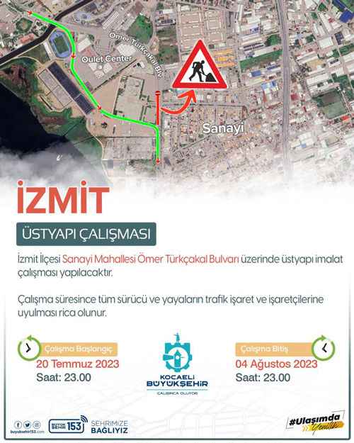 İzmit İlçesi Sanayi Mahallesi Ömer Türkçakal Bulvarı üzerinde üstyapı imalat çalışması yapılacaktır.