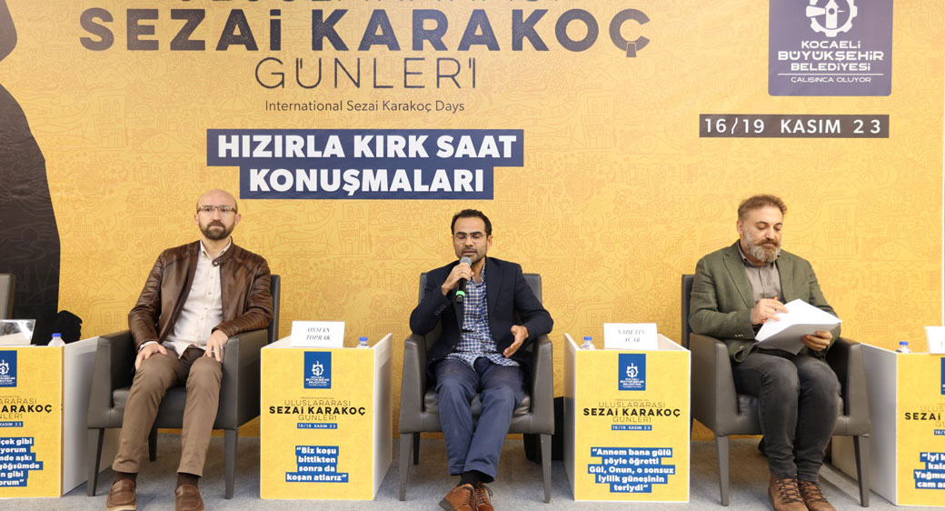 Kocaeli Büyükşehir Belediyesi tarafından 16-19 Kasım tarihleri arasında gerçekleştirilen Uluslararası Sezai Karakoç Günleri, Kocaeli Kongre Merkezinde devam ediyor. “Gün Onun O, Sonsuz İyilik Güneşi” adlı oturumda yazar ve şairler Hüseyin Atlansoy, Yusuf Genç ve Ömer Erdem Karamürsel Alp Salonunda katılımcılarla bir araya geldi. Oturumda üstadın Hızırla Kırk Saat adlı eserinden bölümler okunarak yorumlandı.