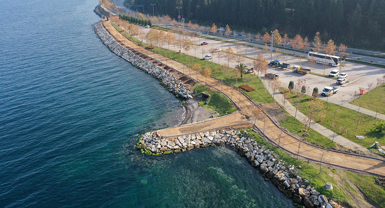 Vatandaşların aileleriyle hoşça vakit geçirebileceği sahil düzenleme çalışmaları Büyükşehir Belediyesi Park ve Bahçeler Dairesi Başkanlığı’nca yapılıyor. 4 Bin 980 metre uzunluğundaki sahil, sosyal donatılarla donanıyor. Çalışmalar kapsamında 5 metre genişliğinde 750 metre baskı beton yol yapıldı. 1.30 metre bisiklet, 3.7 metresi yürüyüş yolu olarak tasarlandı. 30 kayıklık çekek yeri için zemin dolgusu yapıldı. Ayrıca bölgede 70 metrelik tahkimat çalışması tamamlandı.