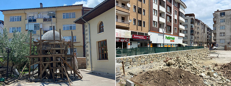 Büyükşehir, Karamürsel’in merkezinde bulunan Karabali Cami ve Hamam onarım çalışmalarının yanı sıra çevre düzenlemesine başladı