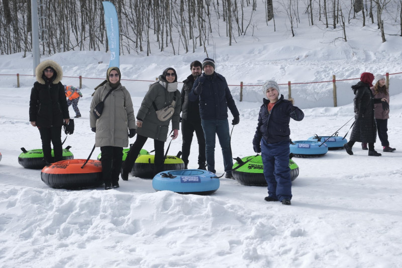 Beyaz karlarla kaplı Kuzuyayla’da coşku hız kesmeden devam ediyor. Büyükşehir’in Kuzuyayla projesinde yapımı tamamlanan kızak pisti KARFEST 2025 etkinliği ile vatandaşların kullanımına açıldı. Şişme botlar ve kızaklarla kızak pistinden kayan kış tutkunları hem eğleniyor hem de muhteşem anılar biriktiriyor. Aileler, arkadaşlar ve kış severler kızak pisti başta olmak üzere kurulan birçok etkinlik alanında gönüllerince eğleniyor. “Hedikli Kar Yürüyüşü”, “İglo Fotoğraf Çekim Alanı”, “Kar Motoru ile Safari”, “Kardan Adam Yarışması”, “Ödüllü Kar Topu Yarışması”, “Seyyar Salıncak”, “Kar Voleybolu” gibi kar temalı etkinliklere katılanlar KARFEST’in keyfini doyasıya yaşıyor.