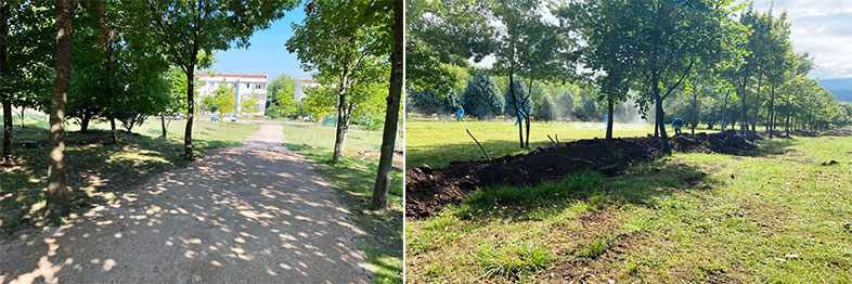 Park ve Bahçeler Dairesi Başkanlığı ekipleri bu doğrultuda mesire alanının yanı sıra bölgede tırpan ve temizlik çalışması da yaptı. Otlar ve yabani bitkiler ekiplerce kesilerek temizlendi, çöpler toplandı. Bununla birlikte yürüyüş yollarının sarı kumu atılarak yürüyüş parkurları belirlendi. Aydınlatma hatları da çekildi.