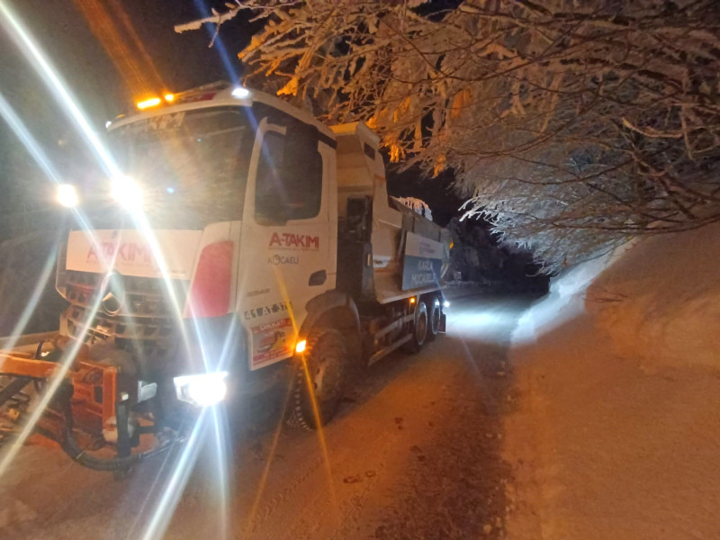 Büyükşehir Belediyesi Karla Mücadele Ekipleri, kar yağışının yoğun olduğu bölgelerde, gece ve gündüz olmak üzere iki vardiyalı olarak görev yapıyor. Özellikle Samanlı Dağları’nın 1.600 metre zirvesinde, İstanbul’a yaklaşık 1,5 saat mesafedeki Sapanca Gölü ve İzmit Körfezi manzarasıyla konuklarına eşsiz güzellikler sunan Kartepe, kış mevsiminde tatilcilerin akınına uğruyor. Bu kapsamda Büyükşehir ekipleri, Kartepe Kayak Merkezi’ne giden yolun açık tutulması için 24 saat boyunca küreme ve tuzlama çalışması yapıyor.