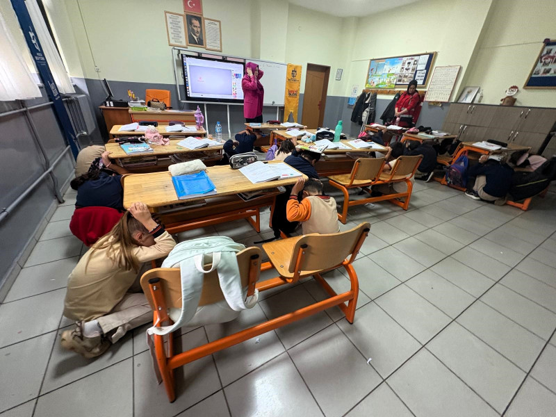 Eğitimlerin ardından okullarda gerçekleştirilen deprem tahliye tatbikatlarında öğrenciler alarm sesiyle birlikte belirlenen sınıf düzenine geçerek öğretmenlerinin yönlendirmesiyle güvenli çıkış noktalarına doğru hareket etti. Tahliye süreci okul yönetimleriyle koordineli şekilde saniyeler içinde tamamlandı ve öğrencilerin sorunsuz şekilde toplanma alanlarına ulaşmaları sağlandı. Tatbikat sonrası yapılan kısa değerlendirmelerde tahliye süreleri ölçüldü, güçlü yönler ve iyileştirilmesi gereken noktalar okul idareleriyle paylaşılırken, uygulamaların gerçek afet durumunda hayat kurtarıcı olduğunun altı çizildi.