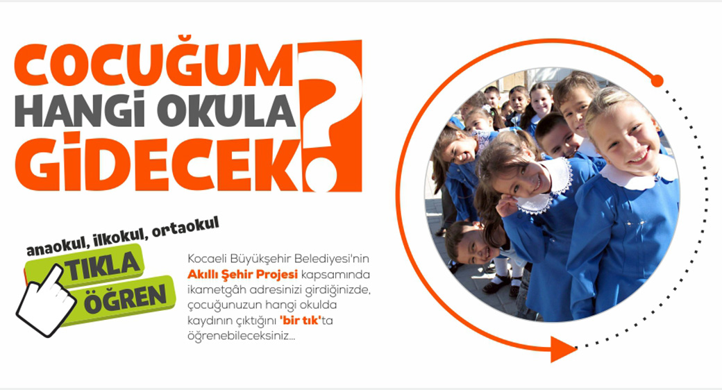 Türkiye’de ilk defa uygulanan sistemle 2018-2019 eğitim ve öğretim dönemi için İzmit ilçesi sınırları kapsamındaki Adrese Dayalı Okul Kayıt Alanı Bölgeleri http://akilliokul.kocaeli.bel.tr adresinden kullanıma sunuldu. Bu adresten faydalanarak veliler çocuklarını kayıt yaptırabilecekleri okulu “Akıllı Okul Kayıt“ sisteminden görebiliyorlar.