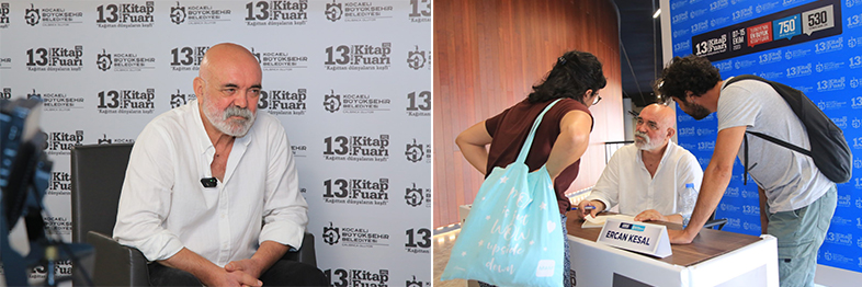 Kocaeli Büyükşehir Belediyesi’nin bu yıl 13. kez düzenlediği Kitap Fuarı, birbirinden değerli şair, yazar, oyuncu ve alanında uzman isimleri ağırlıyor. Fuarın en renkli konuklarından biri kuşkusuz oyuncu Ercan Kesal oldu. Sanatın hemen her alanında seçkin eserler üreten sanatçı büyük ilgi gördüğü fuarda Kocaeli Büyükşehir Belediyesi’nin mikrofonlarına verdiği özel röportajda dikkat çeken açıklamalarda bulundu. ‘’Sizin hep sanatçı yönünüz ve oynadığınız diziler ön plana çıkıyor. Oysa siz aynı zamanda bir doktorsunuz. Hekimlik, yazarlık, oyunculuk… Hangisi daha ön planda?’’ sorusuna verdiği cevapta her yazarın yazdıklarını kimin okuduğunu bilmeden yazdığına dikkat çeken Kesal, ‘’Kitap fuarlarında yazdıklarımızın gerçek sahibiyle karşılaşmak iyi bir şey. Bütün yaptığım işler edebiyattan besleniyor. Hekimliğim de oyunculuğum da senaristliğim de edebiyattan besleniyor. Kelimeler yön verir insanın hayatına. Edebiyatta keşfedersiniz kurmacayı. İyi ki edebiyatla kelimelerle çok erken tanışmışım. Hayatımı kitaplar dizayn etti diyebilirim’’ ifadesini kullandı.