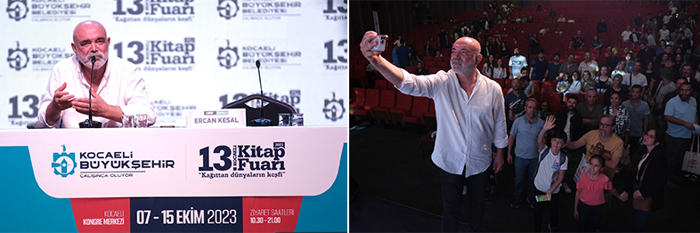 Nuri Bilge Ceylan’ın “Uzak” filmi ile oyunculuğa başlayan, sinema sanatçısı ve yazar Ercan Kesal, Kocaeli Kitap Fuarı kapsamında düzenlenen söyleşide hayranlarıyla da bir araya geldi. “Ben rol yapmayı bilmiyorum. Yazdığım karakterlerle özdeşleşiyor, o oluyorum. Biliyorum onları, rol yapmıyorum” diyerek sinema sürecindeki yaşadıklarını anlattı. Söyleşisinde “Cebimdeki Ekmek Kırıntıları” isimli kitabı hakkında bilgi veren Kesal, bilgi ile bilgelik arasındaki farkı annesindeki özelliklerden örnekler vererek anlattı. Annesinin okuma yazma bilmediğini ifade eden Kesal, ”Onca sene eğitim aldım. Annemin bildikleriyle karşılaştırdığımda benim öğrendiklerim hiçbir şey. İşte bizim belki de anlayamadığımız; annemin bilgeliğini hiçbir bilgi öğretemez” şeklinde konuştu.