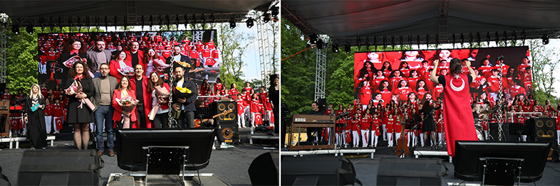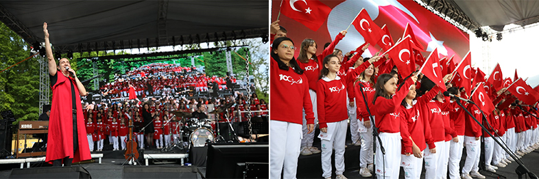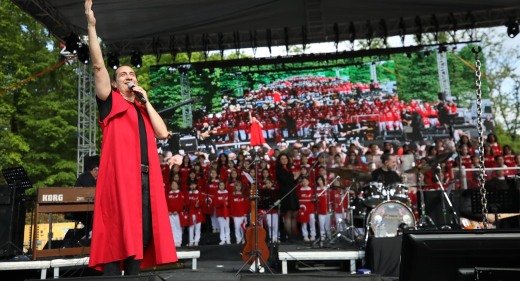 Ünlü sanatçı Kıraç, aralarında deprem bölgesinden gelen çocukların da olduğu 100. Yıl Çocuk Korosuyla Ormanya’da 23 Nisan coşkusunu zirveye taşıdı