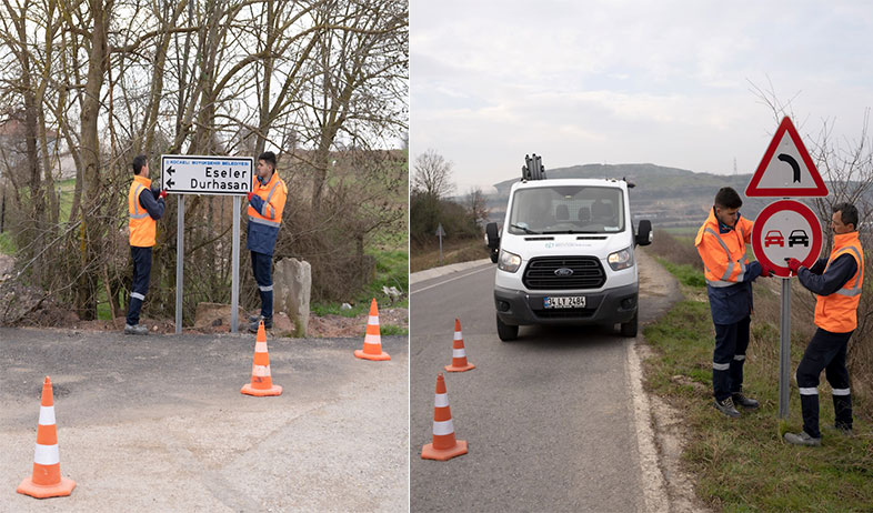 Kocaeli Büyükşehir Belediyesi’nce yollardaki en önemli güvenlik işaretlerinden olan yön levhalarının montajlarına il genelinde başlandı. Levha çalışmalarına kırsal mahallelerden başlayan Kocaeli Büyükşehir Belediyesi, ana arterler başta olmak üzere Kocaeli genelinde bu yıl içerisinde 50 bin adet uyarı ve tanzim işaret levhaları ve 2 bin 500 adet bilgi levhası montajı yapılacak.