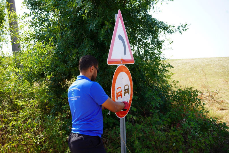 Kent genelinde ulaşımın daha güvenli ve konforlu hale gelmesi için tüm birimleriyle sahada olan Büyükşehir Belediyesi, vatandaşların güvenliği için trafik levha yerleştirme faaliyetlerine aralıksız devam ediyor. Kırsal bölgelerde sürdürülen çalışmalarda yeni levhalar yerleştirilirken, mevcut levhaların da görünürlüğü ve sağlamlığı düzenli olarak kontrol ediliyor. Hasar gören veya solan levhalar ekiplerce hızla onarılarak yeniden kullanıma kazandırılıyor.