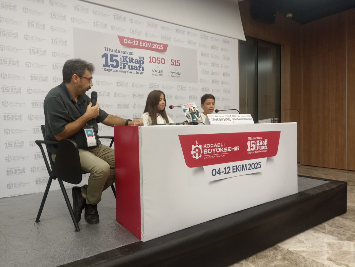 Uluslararası 15. Kocaeli Kitap Fuarı’na konuk olan yazar ikiz kardeşler, ilk kitaplarını yazma serüvenini kendileri gibi küçük okurlarına anlattı. 9 yaşındaki yazar kardeşler, ”Kitap yazmak isteyenler çok okusun” diyerek yaşıtlarına tavsiyelerde bulundu.