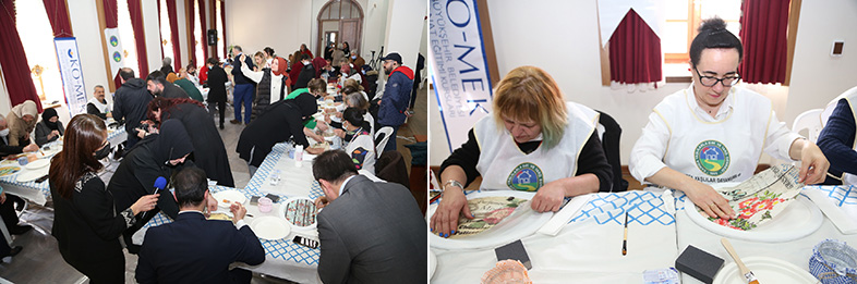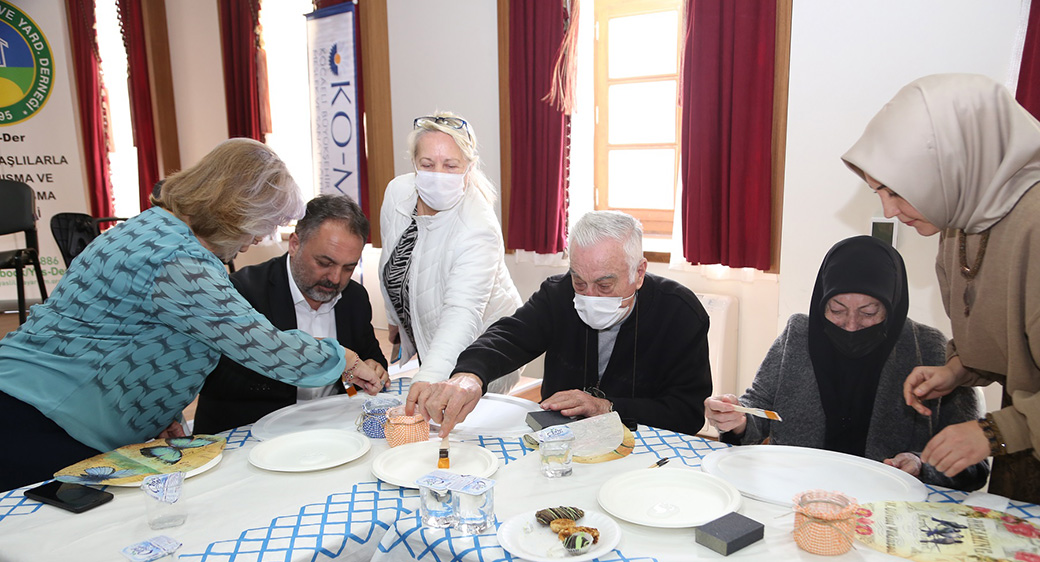 Konuşmaların ardından protokol ve dernek üyeleri KO-MEK usta eğiticiler eşliğinde ahşap tepsiler üzerinde dekupaj çalışması yaptı. Oldukça neşeli bir ortamda gerçekleştirilen etkinlikte yaşlılar ahşap tepsileri gönüllerince boyayarak gün sonunda güzel bir anı bırakmış oldu.