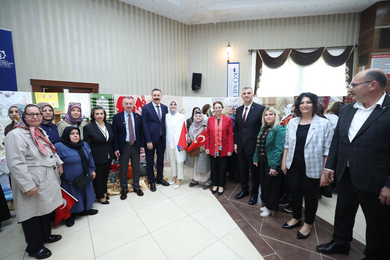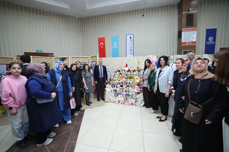 Kocaeli Büyükşehir Belediyesi KO-MEK’in yıl sonu ilçe sergileri, Kartepe ve Kandıra’nın ardından Gölcük ile devam etti. Kurslardaki başarı hikayelerine dikkat çeken Başkan Büyükakın, “Burası büyük bir aile oldu” dedi.Kocaeli Büyükşehir Belediyesi Meslek ve Sanat Eğitim Kursları KO-MEK’te yıl sonu sergileri devam ediyor. Kursiyerlerin bir yıl boyunca oluşturduğu eserlerden oluşan, “Biz Birlikte Türkiye’yiz” temalı sergilerin üçüncüsü, Gölcük’te açıldı. Kartepe ve Kandıra’da olduğu gibi Gölcük’teki sergide de büyük bir heyecan vardı. Gölcük Kongre Sarayı’ndaki açılışta müzik kursu eğitmenleri, davetlilere mini bir konser verdi.