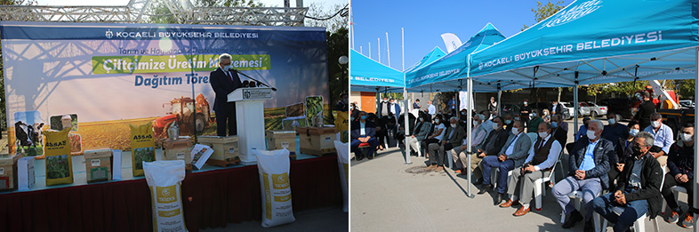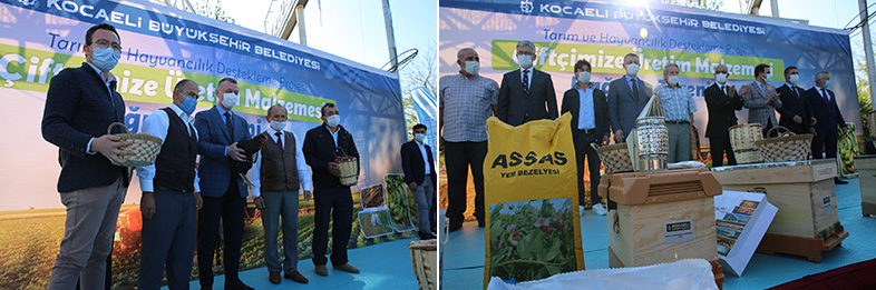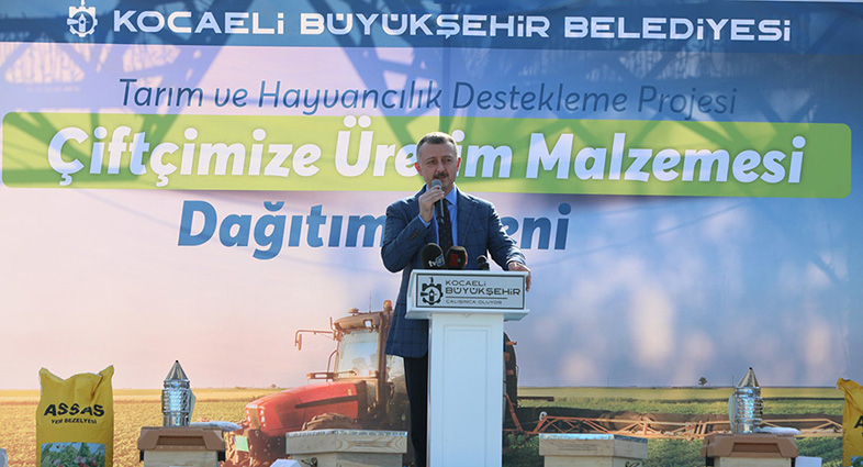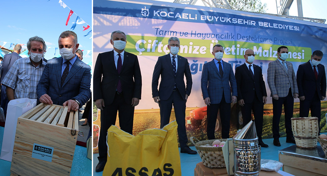 Tarım ve hayvancılığın geliştirilmesi için projeler geliştirdiklerini söyleyen Kocaeli Büyükşehir Belediye Başkanı Tahir Büyükakın, “127 çiftçimize 1.050 adet ruşet kovan ve 3.337 adet kovan tabanı desteği vereceğiz” dedi. Kocaeli çiftçisine kovan dışında pek çok destek verdiklerini vurgulayan Başkan Büyükakın, “Tüm ilçelerimizde destekleme çalışmalarımız devam ediyor. 20.000 adet atak-s yumurta tavuğu ve kümes ekipmanları desteği dağıtımımız sürüyor” dedi. Sonbahar dönemi yem bitkisi tohumu destekleme projesinin de devam ettiğini söyleyen Başkan Büyükakın, “Yaklaşık 2.000 çiftçimize 600 ton yem bitkisi tohumu (arpa, yem bezelyesi ve tritikale) dağıtılıyor” şeklinde konuştu.