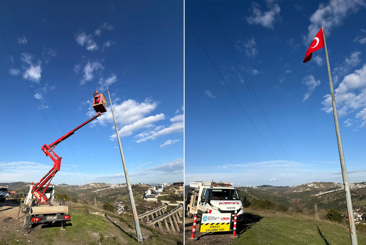 İzmit’in Serdar Mahallesi’nde bulunan ve zamanla yıpranarak halatı kopan Türk bayrağı, mahalle sakinleri tarafından Kocaeli Büyükşehir Belediyesi’ne bildirildi. Gelen talep üzerine A Takımı ekipleri kısa sürede bölgeye yönlendirildi.