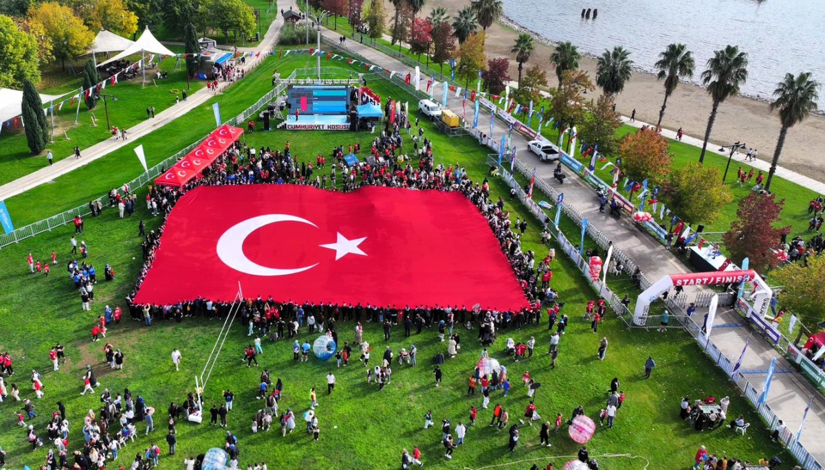 ‘Sporun Başkenti Kocaeli’ vizyonu doğrultusunda sporun her branşına önem veren Kocaeli Büyükşehir Belediyesi, 29 Ekim Cumhuriyet Bayramı kutlamaları kapsamında Sekapark’ta 12. Uluslararası Kocaeli Cumhuriyet Koşusu düzenledi. Cumhuriyet’in 102. yıl kutlamalarını Cumhuriyet Koşusu ile taçlandıran Büyükşehir Belediyesi sayesinde yerli ve yabancı her yaştan binlerce sporsever Sekapark alanına sığmayan bayram coşkusuna ortak oldu. Öte yandan Sekapark alanında 102 izci ile açılan dev Türk Bayrağı büyük bir alkış alırken, aileleri ile birlikte etkinliğe katılan çocuklar basket potası, tırmanış duvarı, zıplama alanı ve halat çekme oyunu gibi aktivitelerle keyifli vakit geçirdi.