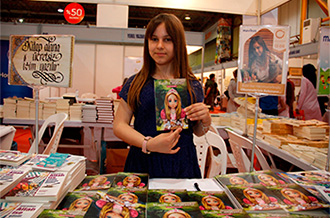 Kocaeli Fuarı’nın en küçük yazarı kitaplarını imzalıyor
