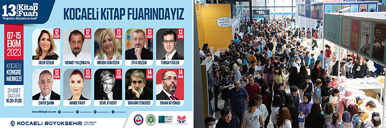 Türkiye’nin en büyük kitap fuarı 13. kez kapılarını açıyor. Kocaeli Büyükşehir Belediyesi’nin düzenlediği 13. Kocaeli Kitap Fuarı, 7-15 Ekim tarihleri arasında 9 gün boyunca bir milyonu aşkın kitapseveri ağırlamayı bekliyor. 450’den fazla yazarın söyleşilerinin yanı sıra Yapı Kredi’den Turkuaz Kitap’a, Can’dan Dergâh’a, Alfa’dan TİMAŞ’a Türkiye’nin en büyük yayınevlerinden Kocaeli’nin yerel yayıncılarına kadar 390 yayınevi dünya ve Türk edebiyatının önemli eserlerini ziyaretçilere sunacak. Toplamda 530’u aşkın yayınevi, sahaf ve STK’nın yer alacağı 13. Kocaeli Kitap Fuarı’nda söyleşi, panel ve imzalardan oluşan 750’den fazla etkinlik sizleri bekliyor. 13. Kitap Fuarı’nın Onur Konuğu ünlü sosyolog ve yazar Prof. Dr. Ümit Meriç olacak. Kocaeli Büyükşehir Belediye Başkanı Tahir Büyükakın, ‘’7-15 Ekim’de 13. Kocaeli Kitap Fuarı’nda 390 yayınevi, 450 yazar ve 750’yi aşkın etkinlikle kâğıttan dünyaları keşfe hazır mısınız?’’ diyerek herkesi fuara davet etti.