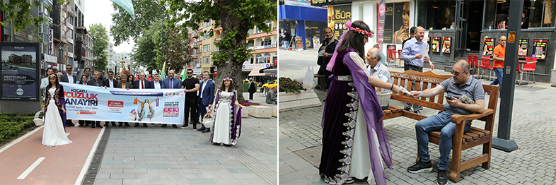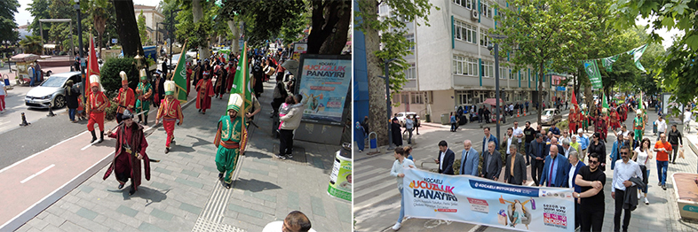 Kocaeli Büyükşehir Belediyesi Sivil Toplum Kuruluşları ile İlişkiler Dairesi Başkanı Sebahattin Yamak, Kocaeli Esnaf ve Sanatkarlar Odası Başkanı Kadir Durmuş ve esnaf odaları başkanlarının yer aldığı kortej panayır alanında son buldu. Yürüyüş esnasında vatandaşlara el ilanları dağıtılarak panayıra davet edildi.