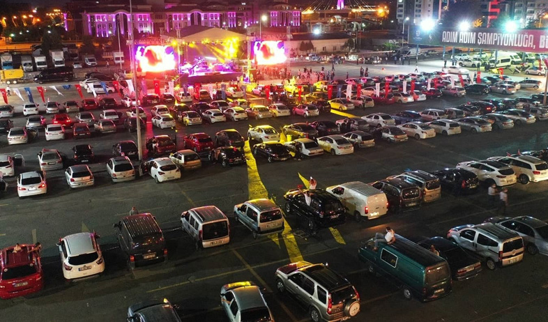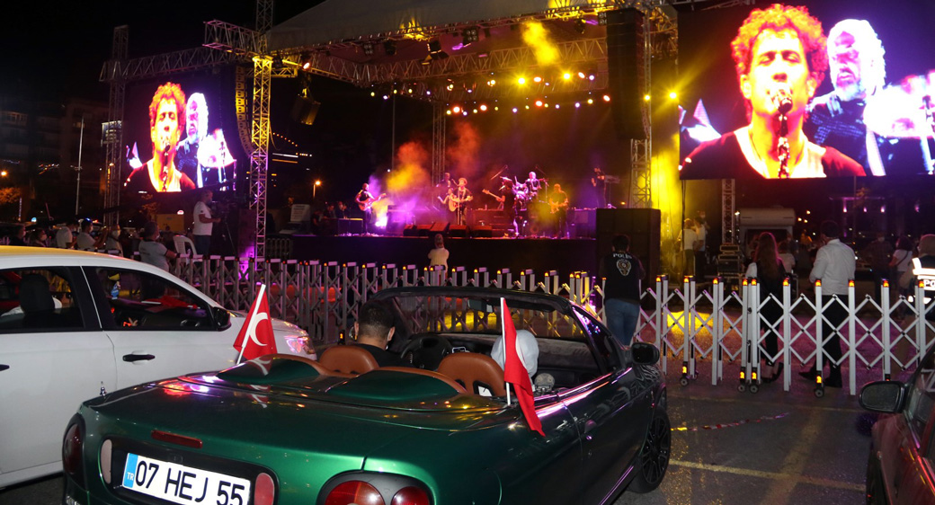 Milli İrade Meydanı’nda düzenlenen Kıraç konserini Koronavirüs salgını nedeni ile araçlarından izleyen vatandaşlar, doyasıya eğlendi