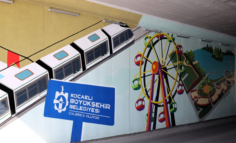 Çalışmalarda Kocaeli’nin tarihi, kültürel ve doğal güzellikleri ön plana çıkıyor. “Kartepe Teleferiği”, “Kuzuyayla”, “Mavi Bayraklı Plajlar”, “Valide Sultan Köprüsü”, “Kasr-ı Hümayun” gibi simgeler grafitti sanatçılarının fırçalarıyla duvarlara taşındı. “Mutlu Şehir Kocaeli” yazısı, emekçi çiftçilerin figürleri ve tramvay görselleri ise çalışmalara ayrı bir anlam kattı. Büyükşehir Belediyesi, şehrin değerlerini sanatla buluşturarak hem kent estetiğini güçlendiriyor hem de şehir içi ulaşımda vatandaşlara keyifli bir görsel deneyim sunuyor.