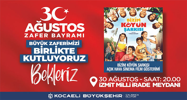 Büyükşehir Belediyesi her zaman olduğu gibi bu anlamlı etkinlik zincirinde de minik dostlarını unutmadı. Çocuklar, Milli İrade Meydanı’nda 30 Ağustos Pazartesi günü “Bizim Köyün Şarkısı” adlı filmi Açık Hava Çocuk Sineması’nda izleyecek. Sinema 20.00’de başlayacak. Etkinlik sırasında çocuklara, sinema keyfinin vazgeçilmezi olan patlamış mısır ikramında bulunulacak. Zafer konserlerinde ise, Muharrem ayı dolayısıyla vatandaşlara aşure ikramı yapılacak.