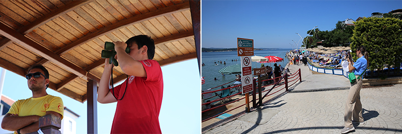 Mavi Bayrak Programı Ulusal Koordinatörü Almıla Kından Cebbari, Ulusal Koordinatör Yardımcısı Gül İrem Şahin, TÜRÇEV Denetim Sorumlusu Mert Can Kaya, Kültür ve Turizm Bakanlığı Yatırım ve işletmeler Genel Müdürlüğü Proje İnşaat Dairesi Başkanlığı Şube Müdürü Adalet Özdürük ve Biyolog Canan Cantemur’un katıldığı Mavi Bayrak uygunluk denetimlerinde önemli kriterlere dikkat edildi. Bu kriterler; Deniz Suyu Analizleri, Çevre Yönetimi, Güvenlik ve Donanımlar, Çevre Bilinçlendirme etkinlikleri başlıkları altında toplanıyor. Yüzme sezonu öncesinde ve sezon boyunca deniz suyu numunesi alınıp mikrobiyolojik düzeyde analizlerinin yapılması, plajda cankurtaran ve ekipmanlarının bulundurulması, su sporları ile yüzme alanının ayrılmış olması, engelli olanakları, plaj temizliği önemli kriterlerin bir kısmını oluşturuyor.