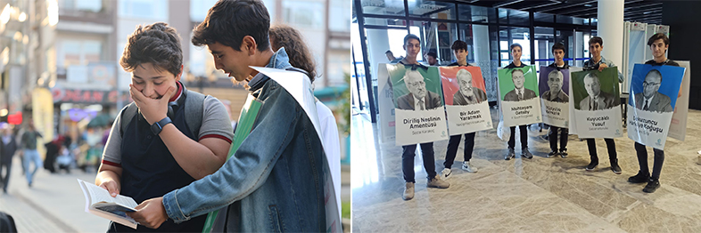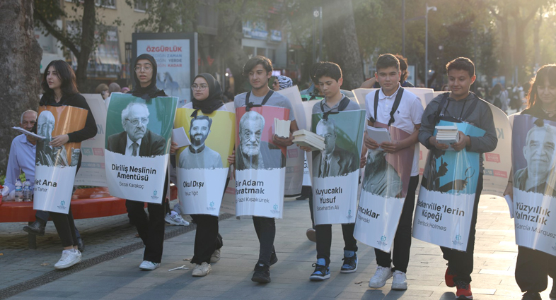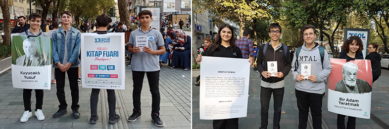 Gönüllü liseli öğrenciler, 7-15 Ekim tarihleri arasında düzenlenecek 13. Kocaeli Kitap Fuarına Kocaelili vatandaşları kitap hediye ederek davet etti